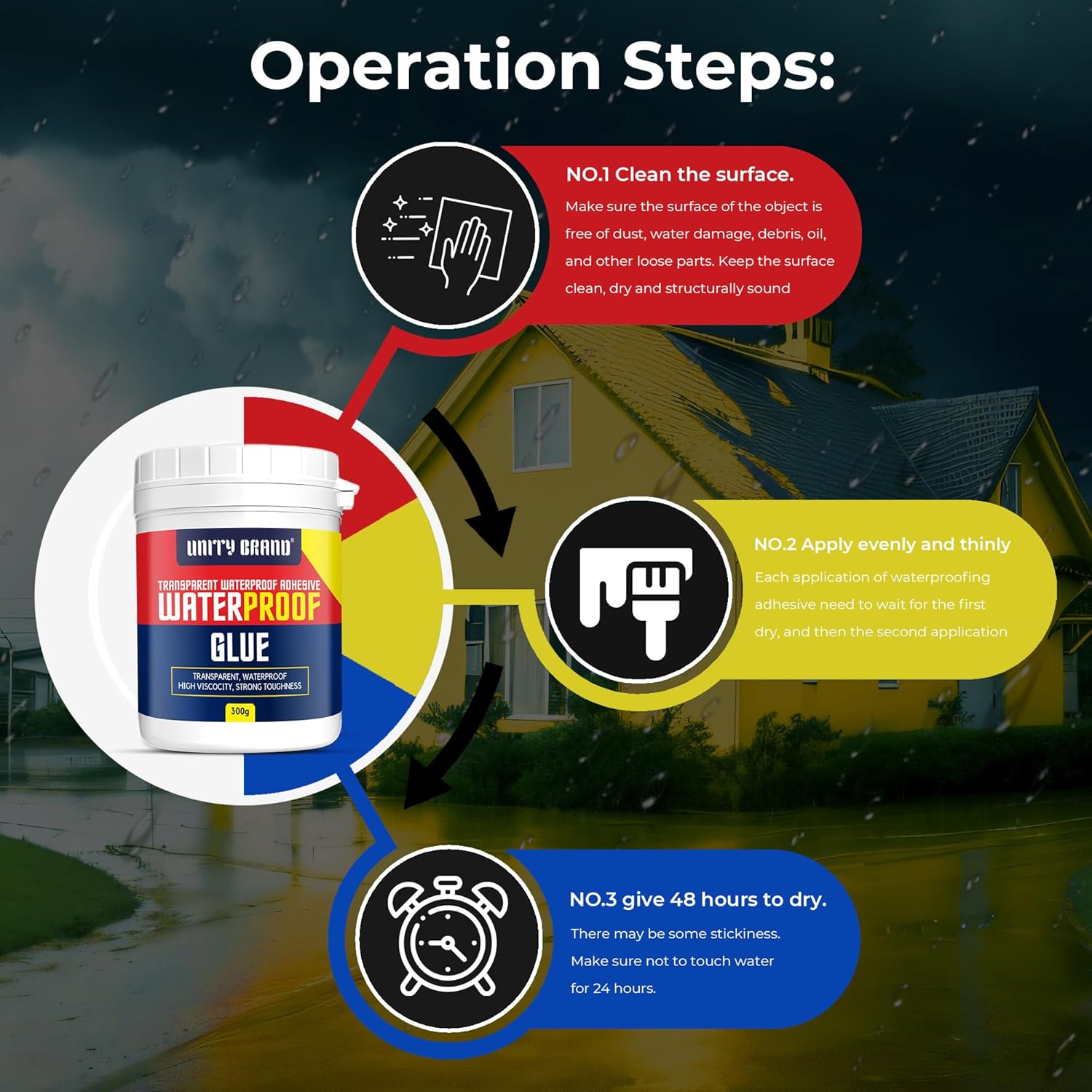 đ„ăPremium QualityăOur liquid waterproof sealant/coating is water-based. Multiple overlapping layers create a permanent bond. The Invisible Waterproof Adhesive forms a thin film that provides insulation against air, water, and moisture. It ensures long-lasting, durable, and weather-resistant roof waterproofing.Â